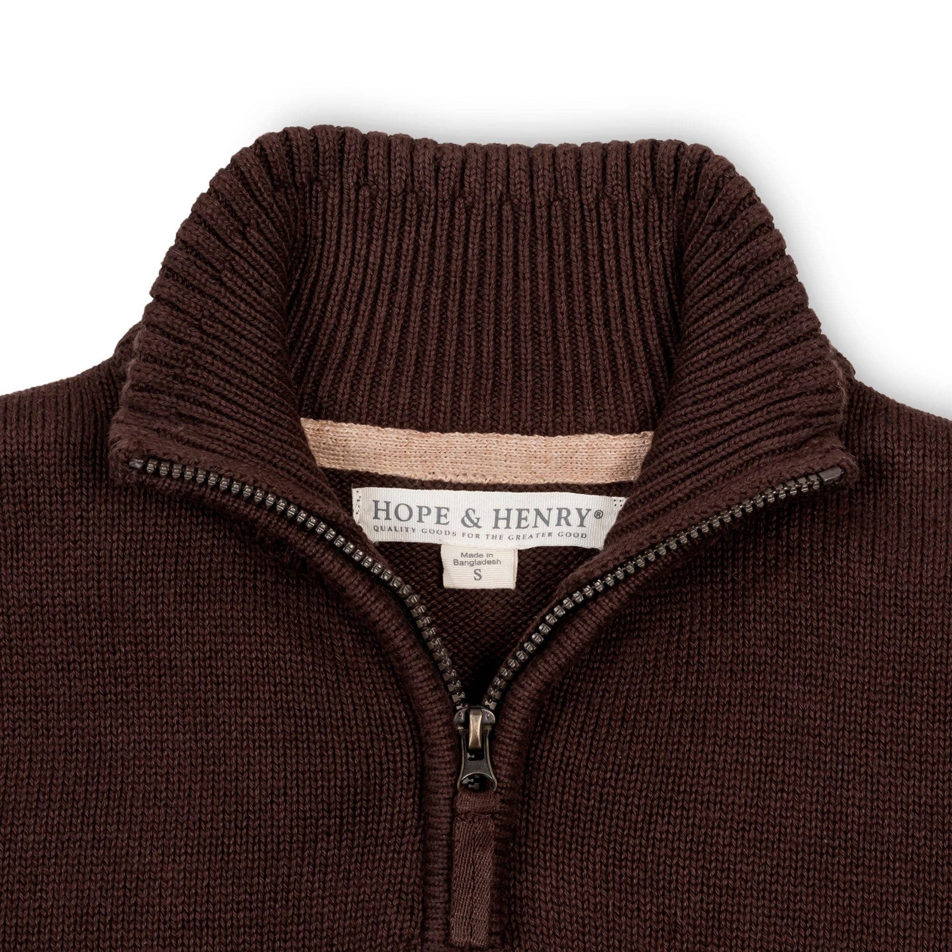 This soft sweater will be a classic cool weather wardrobe staple for your guy. Features a rib knit mock neck, front half zip for easy-on and easy-off, faux suede elbow patches, and our signature super cozy 100% organic cotton yarn. Pairs perfectly with our collection of organic cotton button downs for a polished look. *